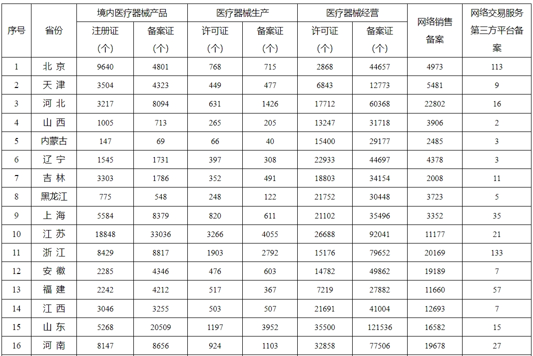 境内注册证数量排名前3: 江 苏、广 东、湖 南