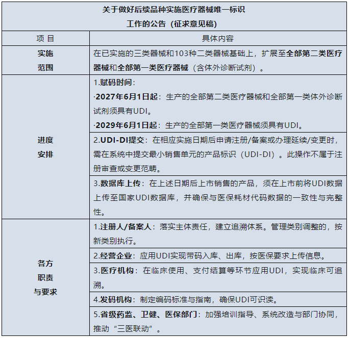 UDI豁免名单及实施时间出炉!国家药监局新规征求意见稿·精简版