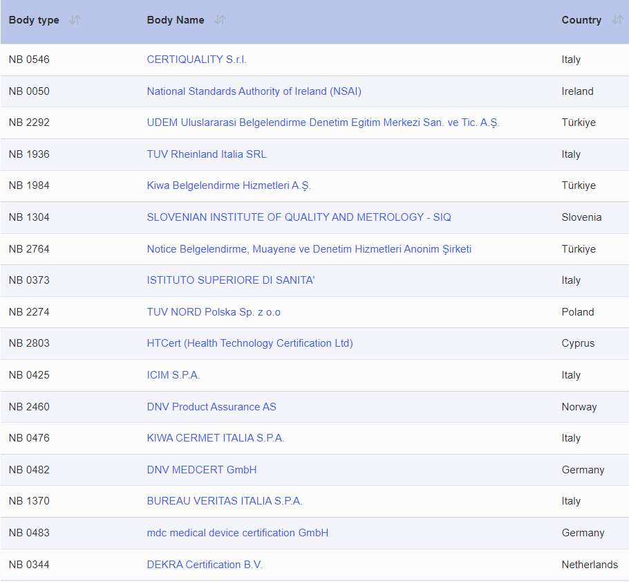 51家MDR公告机构完整名单↓