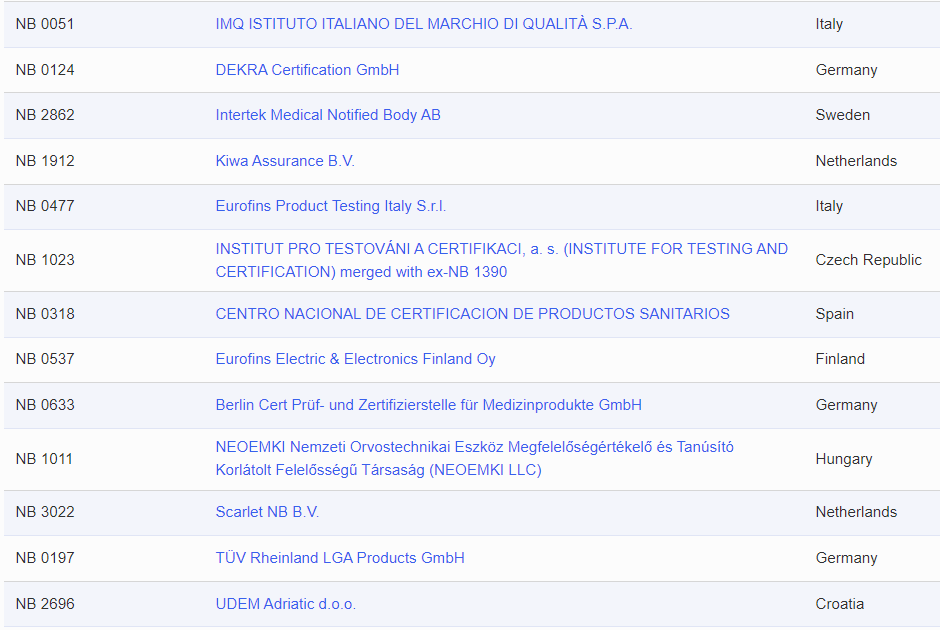 至此,51家MDR公告机构所属国家分布为:意大利11家;德国10家;荷兰4家;土耳其3家;匈牙利、捷克、芬兰、波兰、瑞典、法国、斯洛文尼亚均为2家;西班牙、挪威、克罗地亚、比利时、丹麦、奥地利、斯洛伐克、爱尔兰、塞浦路斯均为1家。