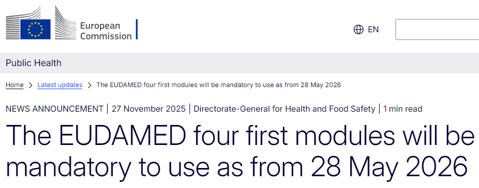 欧盟全新官宣→从2026年5月28日开始,强制推行EUDAMED医疗器械数据库的前4大模块: