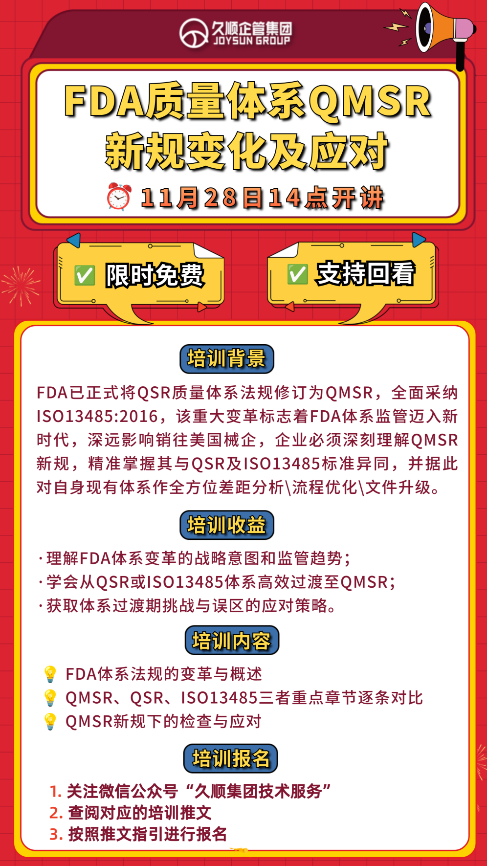 FDA质量体系新规QMSR高能应对培训|3小时后报名结束