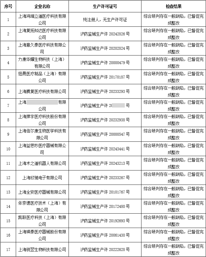体系飞检警报!上海药监通告:3家械企严重缺陷(1家涉嫌违法)