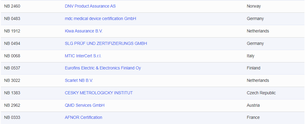 至此,全新全部52家MDR公告机构所属国家分布为:意大利11家;德国10家;荷兰4家;土耳其3家;匈牙利、捷克、芬兰、波兰、瑞典、法国、斯洛文尼亚均为2家;西班牙、挪威、克罗地亚、比利时、丹麦、奥地利、斯洛伐克、爱尔兰、塞浦路斯、马耳他各为1家。