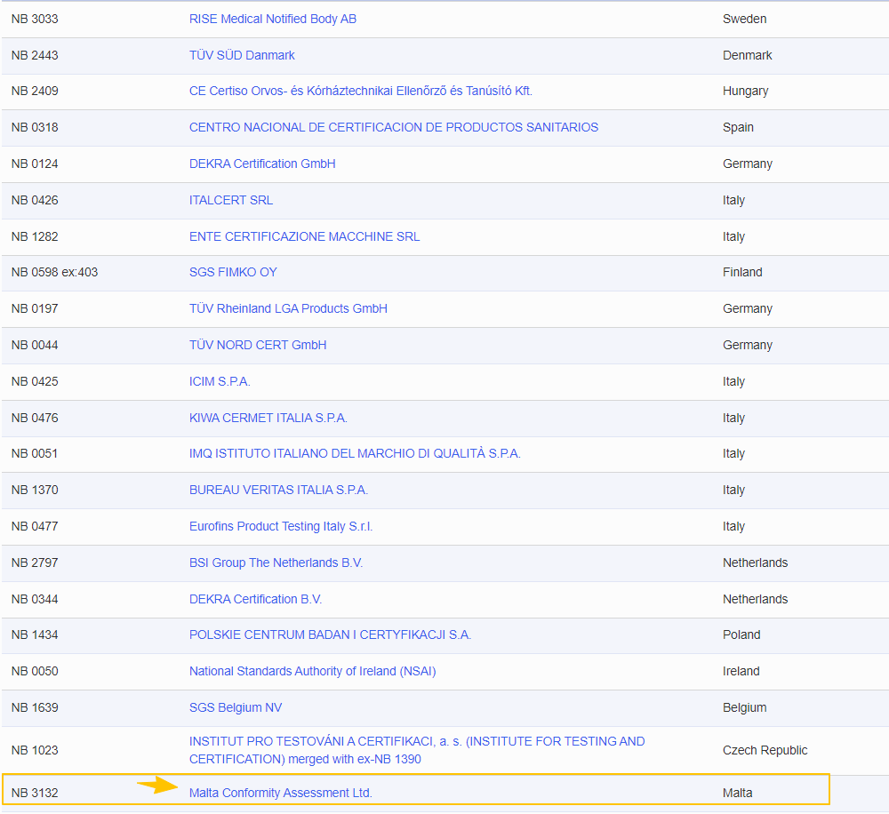 Malta Conformity Assessment Ltd.(简称MCA)被正式指定为具备欧盟MDR法规审核资质的CE发证机构,公告机构号3132,代表该机构已正式获准根据法规(EU)2017/745为医疗器械提供符合性评估服务,为欧盟最小成员国马耳他首家CE公告机构!