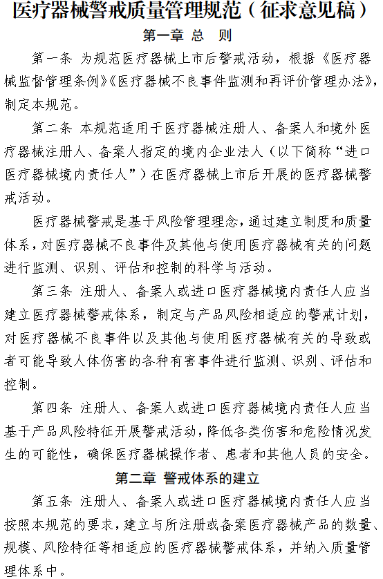 1. 《医疗器械警戒质量管理规范(征求意见稿)》