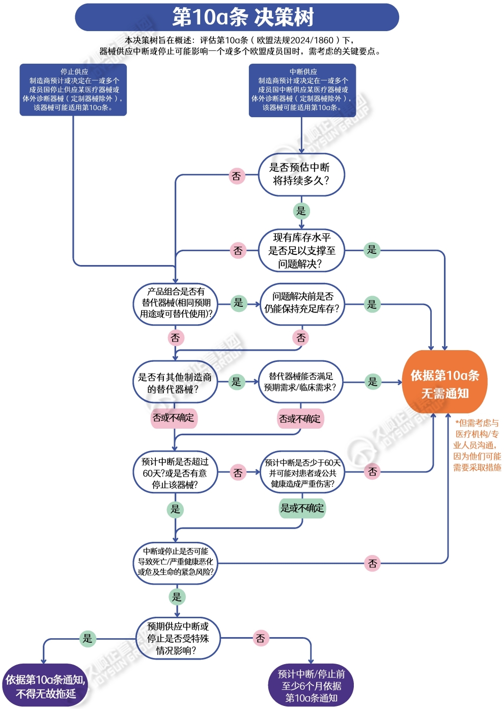 本次重点新增内容为《第10a条下的决策树》(见下图),以树状图形式直观形象地概述:在评估属于第10a条(欧盟法规2024/1860)范围内的器械供应中断或停止时,所需考虑的关键要点(该情况可能影响一个或多个欧盟成员国)。
