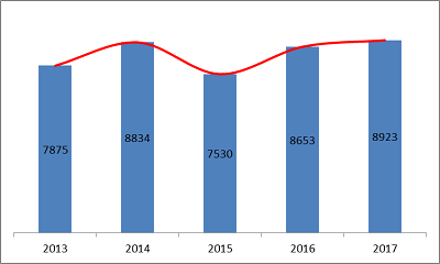 图5.2013-2017年度注册数据图