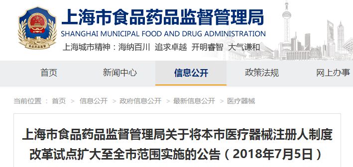 就在昨日(7月5日),上海市食品药品监督管理局发布《关于将本市医疗器械注册人制度改革试点扩大至全市范围实施的公告》,决定将医疗器械注册人制度改革试点扩大至全市,允许上海市范围内的医疗器械注册申请人委托上海市医疗器械生产企业生产产品。