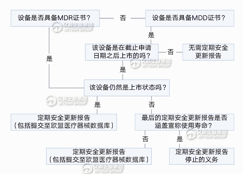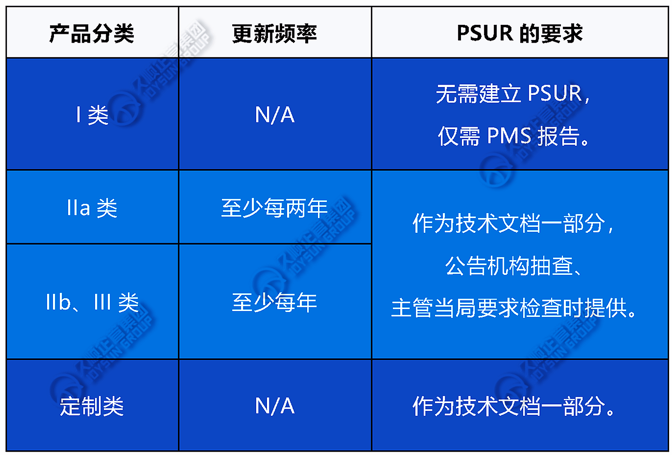 当器械(型号)的最后一个产品已投放市场、该(单个)产品到达预期寿命时,不再需要更新PSUR,换言之:器械(型号)的总体寿命已实现。