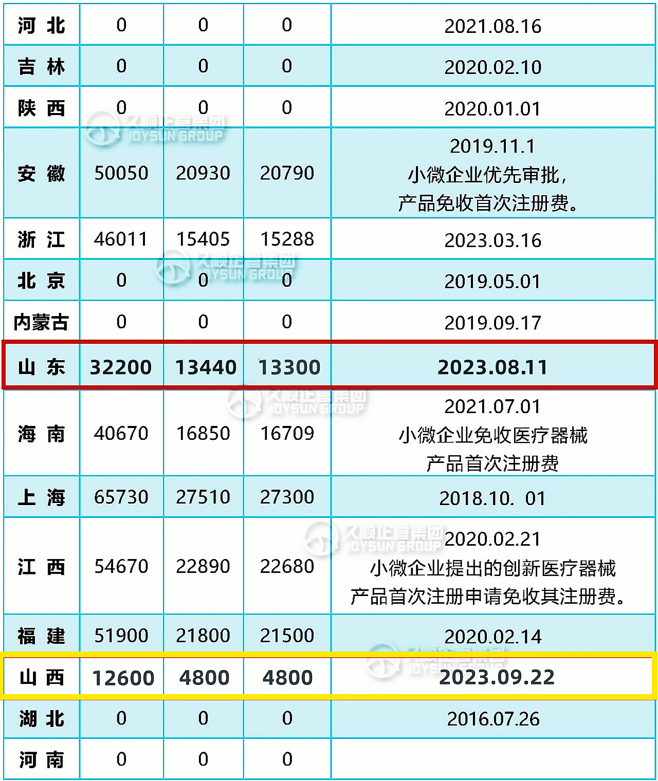 此前,山东于8月14日发布通知:自2023年8月15日至2024年12月31日,第二类医疗器械产品注册费收费标准,按照规定标准的70%执行,即首次注册费由每品种46000元降为32200元,变更注册费由每品种19200元降为13440元,延续注册费由每品种19000元降为13300元。