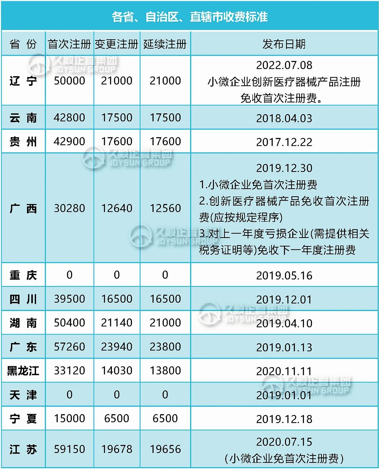· 山东:第二类医疗器械产品注册费收费标准,按照规定标准的70%执行,即首次注册费由每品种46000元降为32200元,变更注册费由每品种19200元降为13440元,延续注册费由每品种19000元降为13300元。