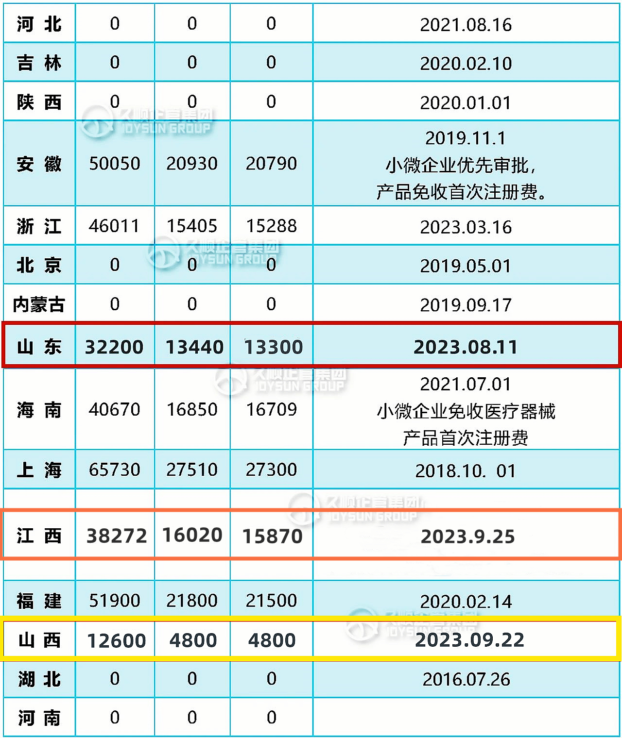 · 山西:境内第二类医疗器械产品首次注册费从25389降至12600,下降幅度约50.4%;变更注册费和延续注册费均从9765降至4800,下降幅度约50.8%。