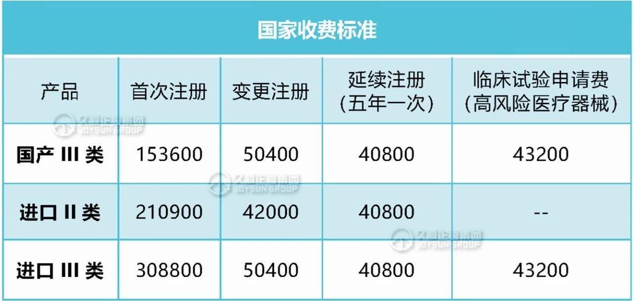 医疗器械产品注册费标准(金额单位:元/注册单元),第二类首次注册费:38272、变更注册费:16020、延续注册费(五年一次):15870。