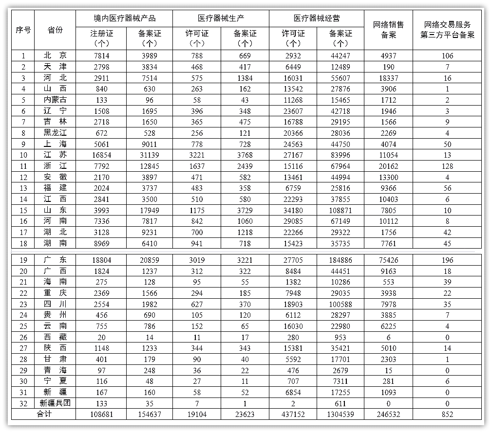 国家药监局发布注册许可信息:各省医疗器械产业谁家强?