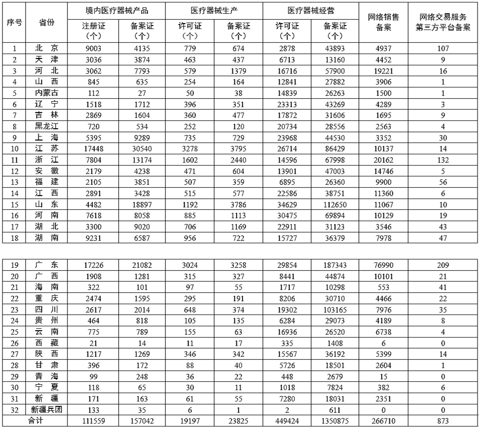为进一步满足企业公众查询医疗器械监管信息的需要,强化社会监督与社会共治,国家药监局汇总了各省(自治区、直辖市)有效期内医疗器械产品注册备案、医疗器械生产企业许可备案、医疗器械经营企业许可备案、医疗器械网络销售备案、医疗器械网络交易服务第三方平台备案信息(附后),按月公布。