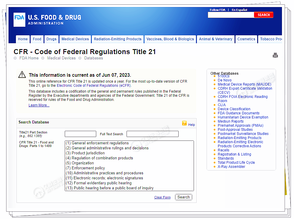 ② 其次,找到与产品相关的FDA法规和产品代码。