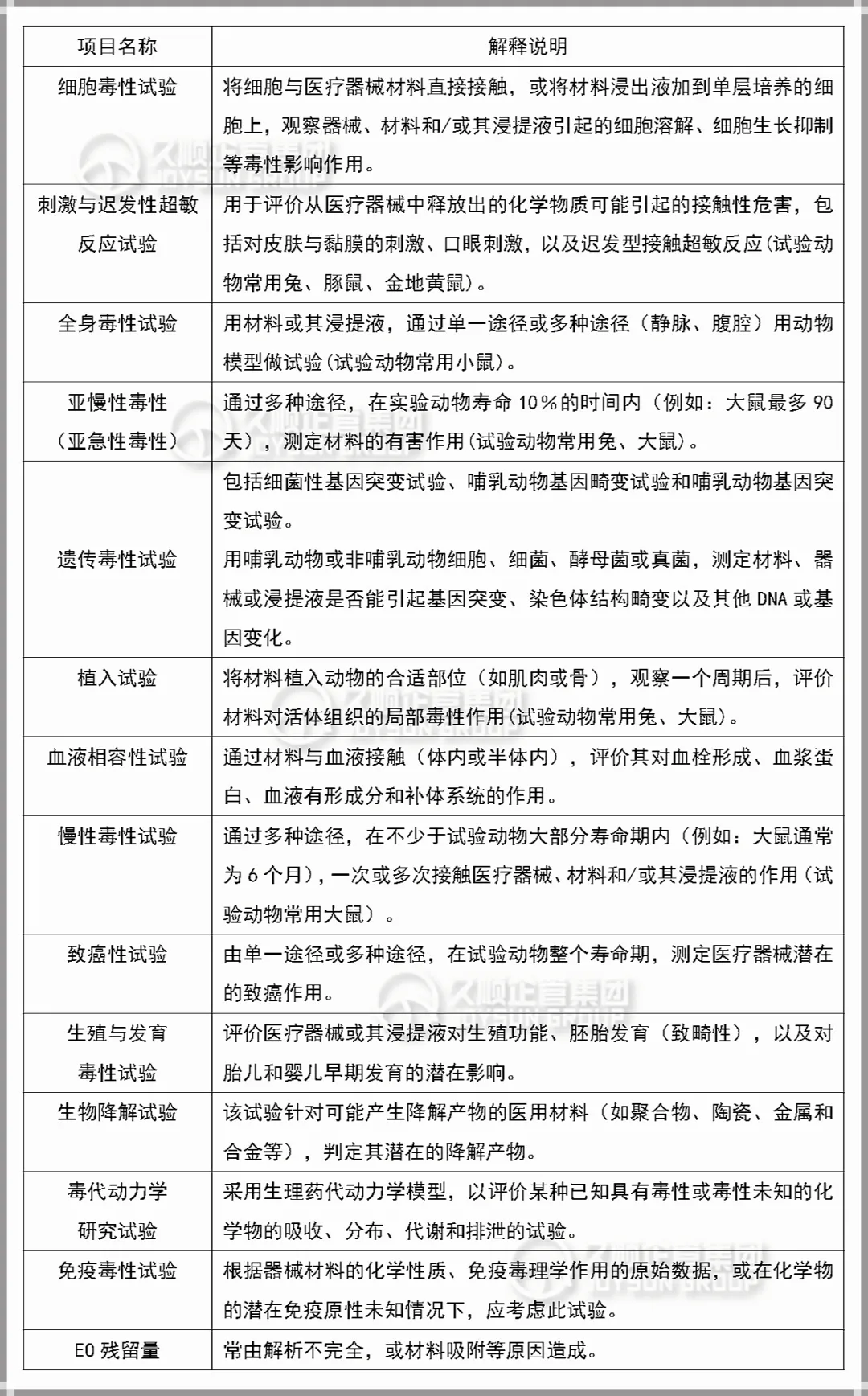 注意:虽然测试的项目较多,但并非所有产品都需要进行全套测试项目,应主要根据产品使用方法及产品作用性能共同决定所需测试项目。