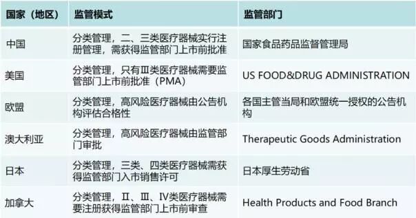 中国的医疗器械监管模式借鉴了美国和欧盟的监管经验,与大多数国家一样对医疗器械实行分类管理,同时既有上市前审批,又有上市后监管。