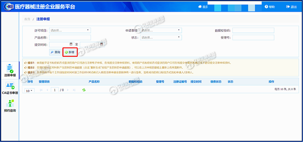1.在界面上(如下图所示)点击【新增】按钮就会跳转出全部申报项目。